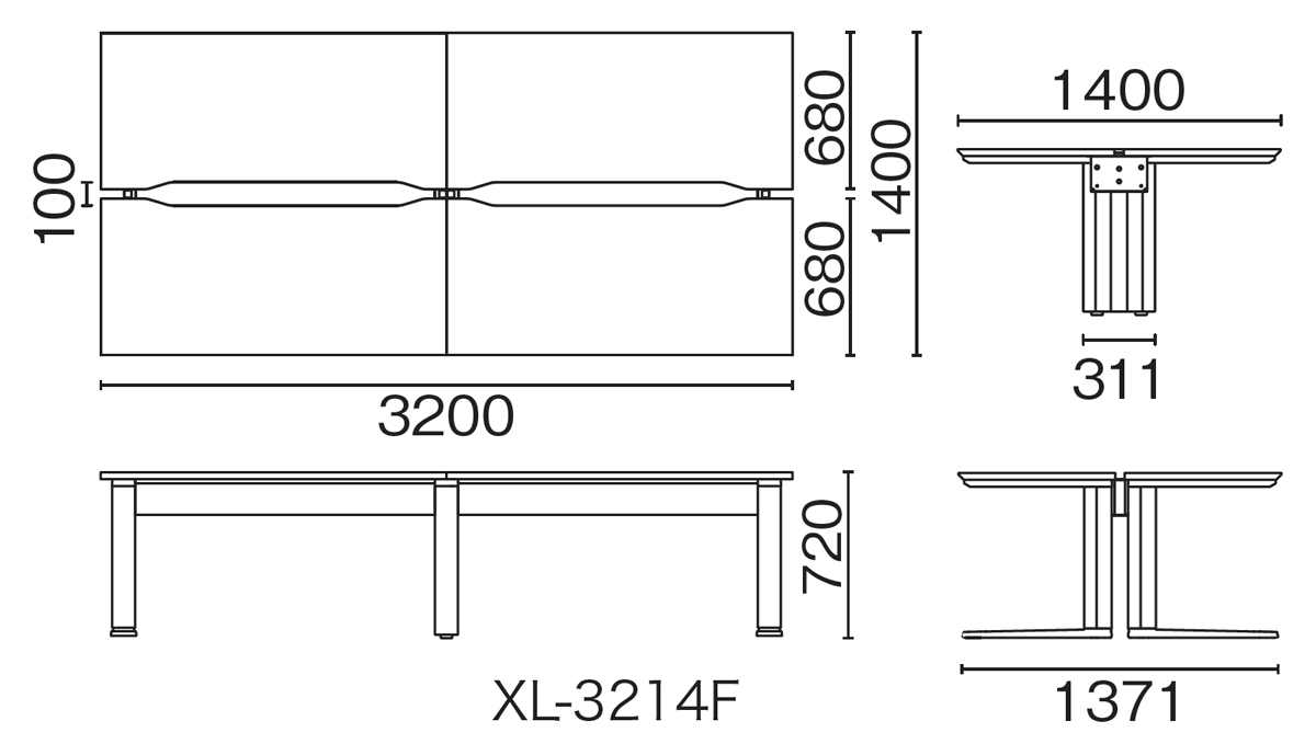 ※W2400は天板分割無し、中間脚1本、W3200は天板2分割、中間脚1本、W4800は天板3分割、中間脚2本になります。