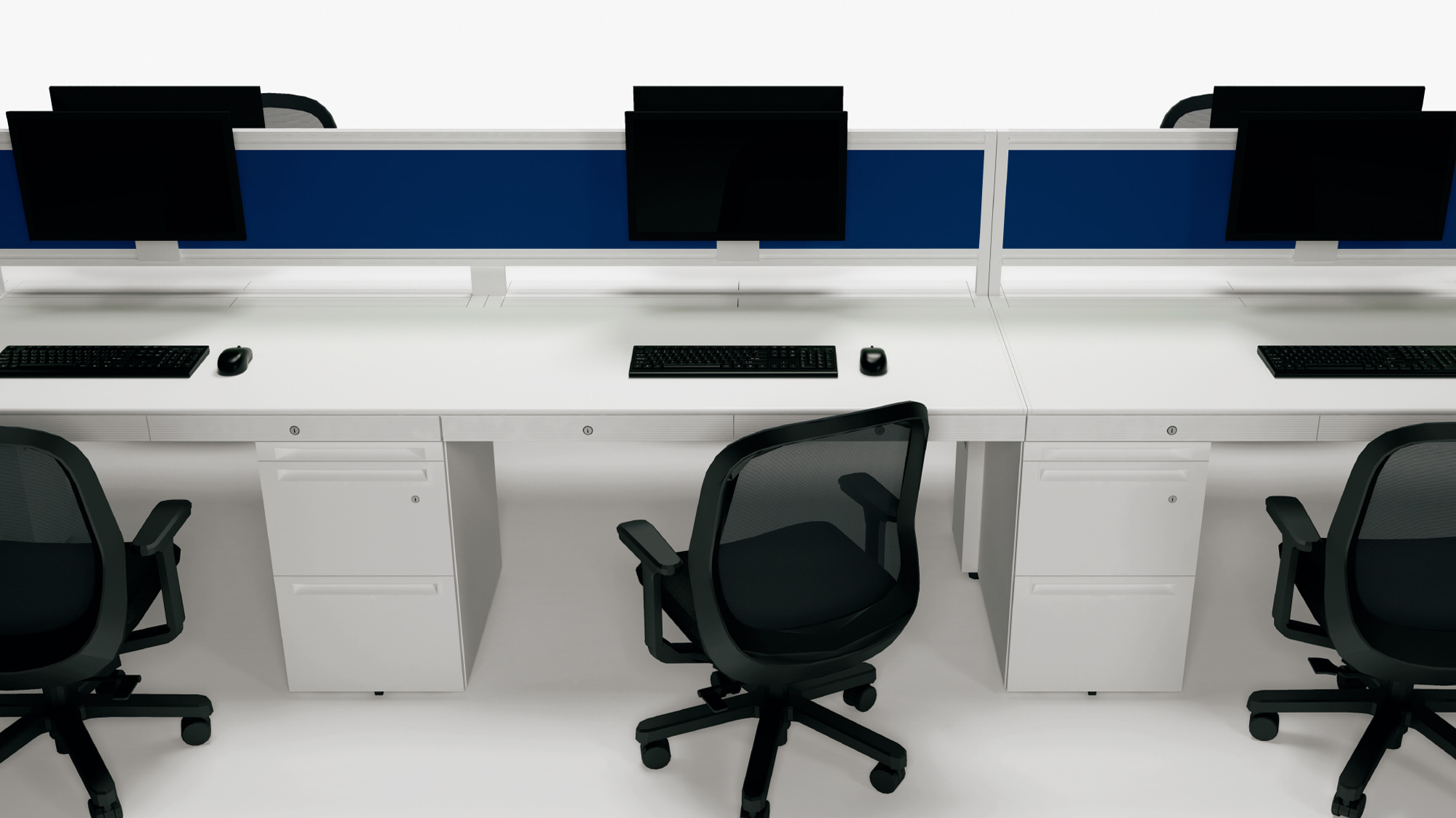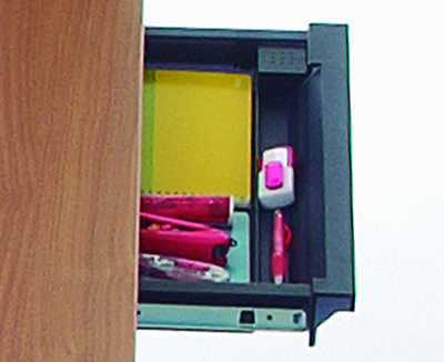 トレー引出しやキャビネットと組み合わせることで、デスクワーク中心のスタッフに最適化したデスクシステム。