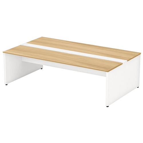 天板の継ぎ目が目立たず自由な座席設定ができる大型デスク。フリーアドレス席やタッチダウンスペースに最適です。