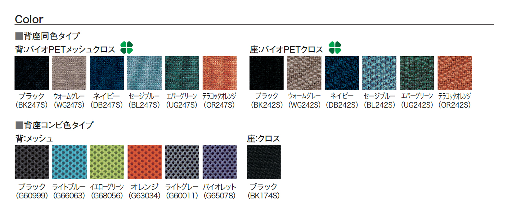- 背カラーコード