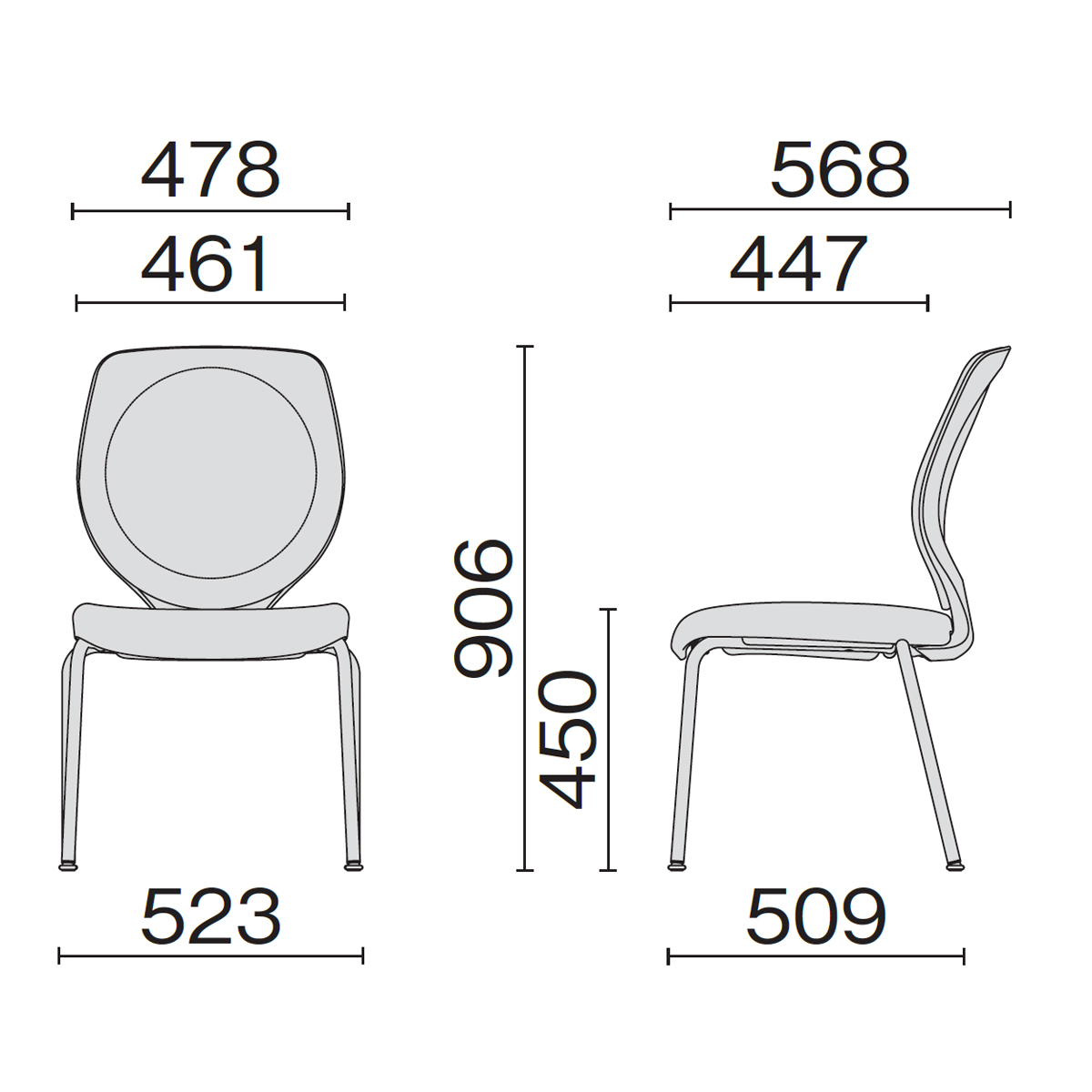 背座同色タイプ 4本脚 肘なし クロムメッキ人間工学に基づいた美しいデザイン。