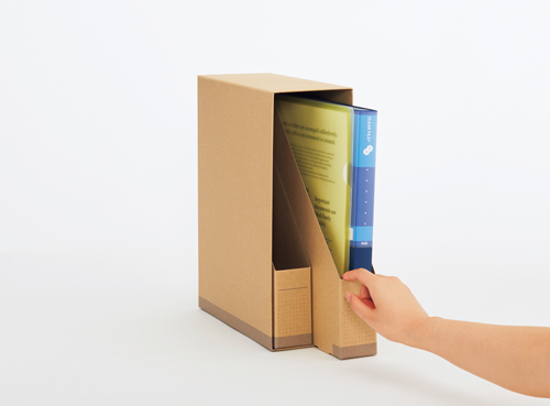 - : 段ボール(古紙パルプ配合率100%再生紙)